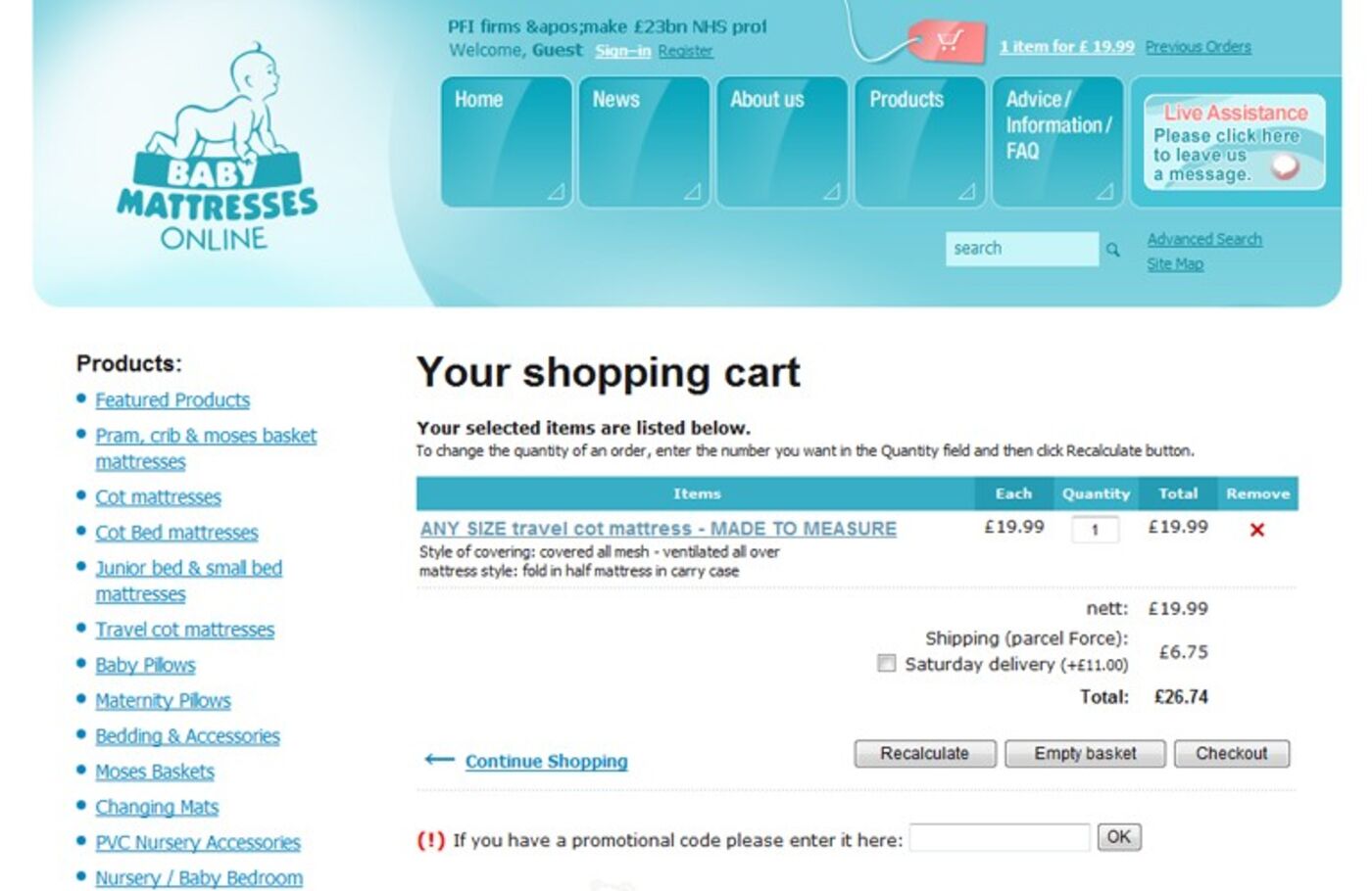 Baby Mattresses Online (2006) Shopping basket